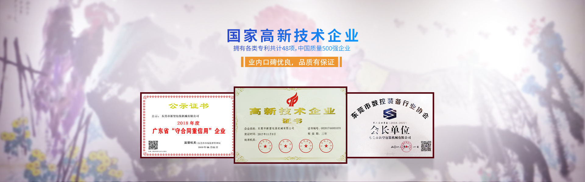 新望機(jī)械成立于1998年,位于東莞市東部工業(yè)園區(qū)的中心地帶——企石鎮(zhèn)東平村,交通方便、環(huán)境優(yōu)美舒適、視野開(kāi)闊。公司注冊(cè)資本2000萬(wàn)元,擁有辦公室、廠房等18,000多平方米。已通過(guò)ISO9001:2015國(guó)際質(zhì)量管理體系認(rèn)證,擁有國(guó)家各類(lèi)專(zhuān)利共計(jì)58項(xiàng)。是東莞市企石鎮(zhèn)工商聯(lián)副會(huì)長(zhǎng)單位、東莞市企石鎮(zhèn)文學(xué)藝術(shù)界聯(lián)合會(huì)副主席單位、東莞市環(huán)保包裝行業(yè)協(xié)會(huì)副會(huì)長(zhǎng)單位、東莞市數(shù)控裝備行業(yè)協(xié)會(huì)第二屆會(huì)長(zhǎng)單位、廣東省包裝技術(shù)協(xié)會(huì)常務(wù)理事單位、廣東省膠粘劑行業(yè)協(xié)會(huì)理事單位、廣東省著名商標(biāo)企業(yè)、國(guó)家高新技術(shù)企業(yè)。